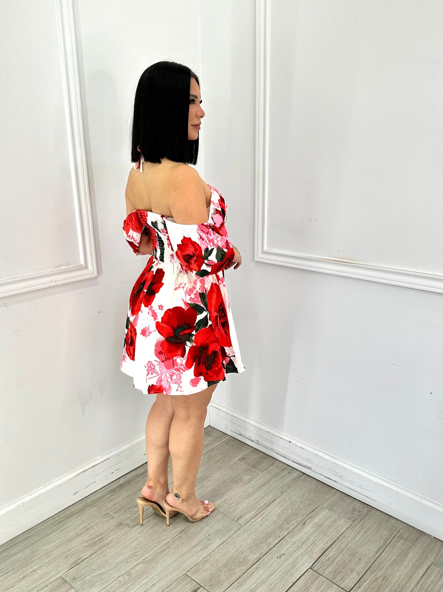 White/ Red Floral Dress